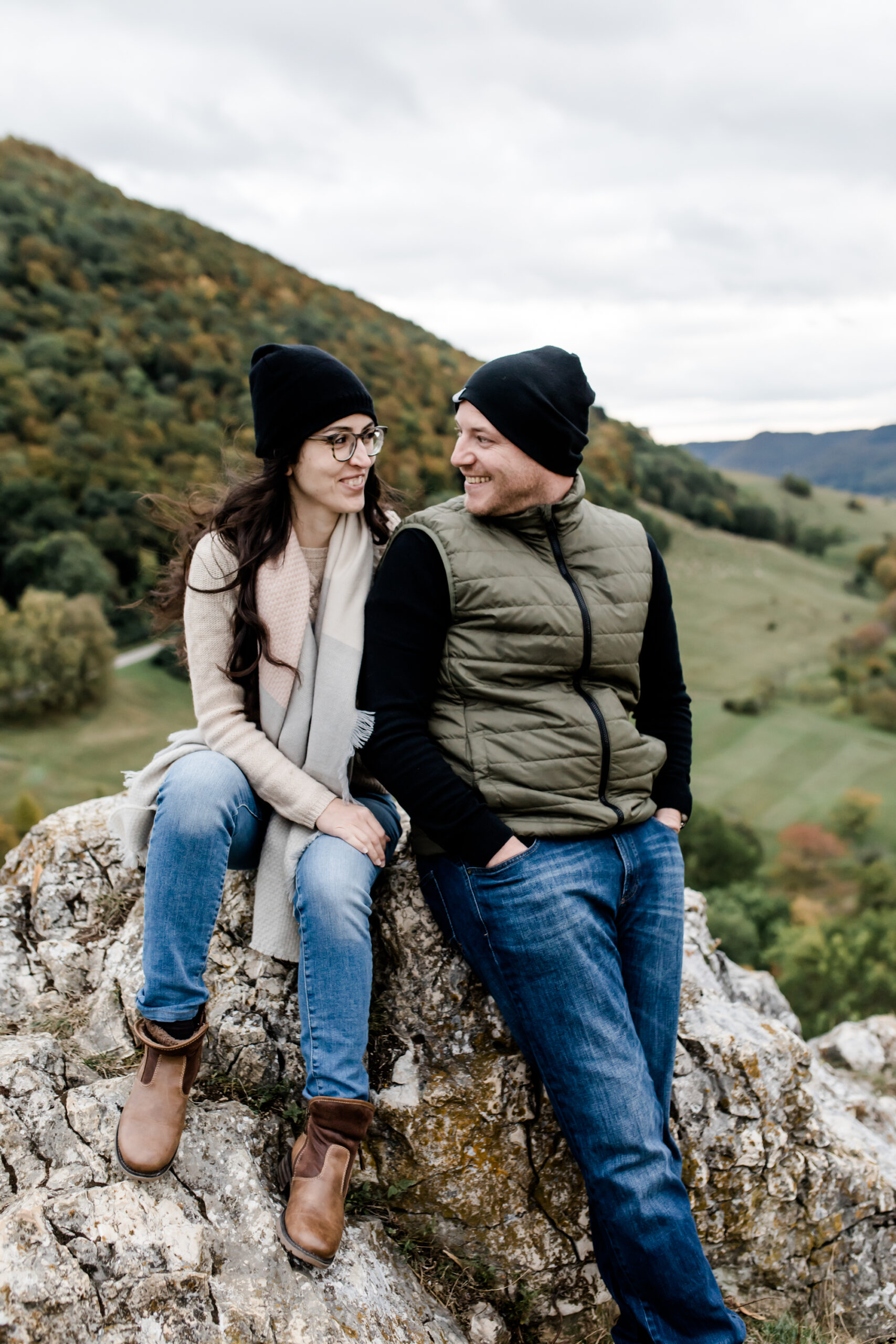 Hier ist Abstimmung wichtiger als Gleichheit. Eure Outfits sollten farblich harmonieren, ohne identisch zu sein. Schlichte Kombinationen wie helle Oberteile mit dunklen Jeans wirken zeitlos und lassen euch als Einheit erscheinen. Wichtig: Beide sollten sich wohlfühlen – das sieht man auf den Bildern.